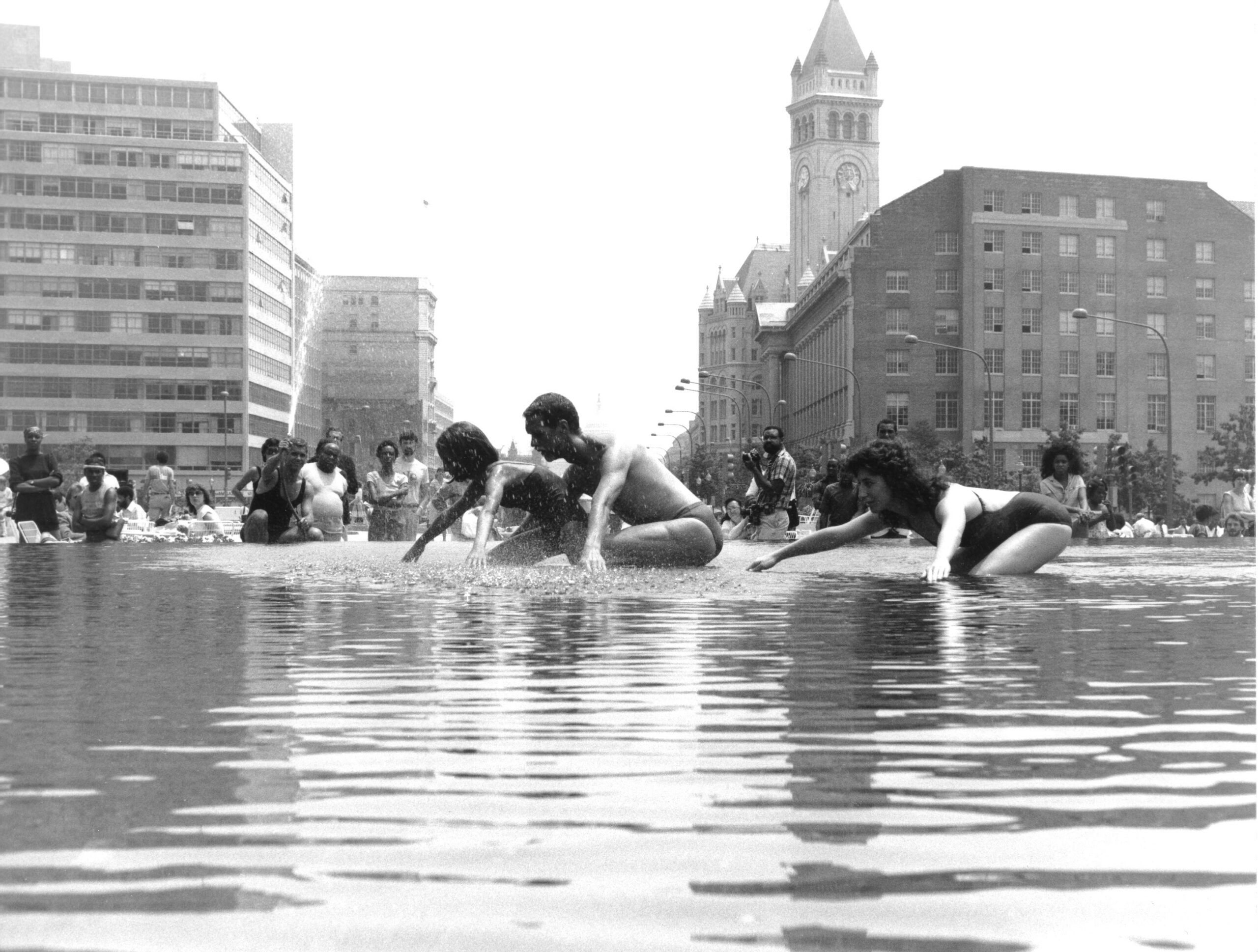 (1983) June 24 Wet and Wonderful in Washington, DC (Western Plaza) – a dance, music, and water sculpture event at National Freedom Plaza, Pennsylvania Avenue toward the Capital Building, conceived by Maida Withers and constructed in collaboration with MWDCCo dancers, John Bailey and Susan Jamieson, Susan Short Benzinger, Matthew Brown, along with invited DC community dancers. Susan Jamieson was involved in creation of magical monsters using large sheets of clear plastic.